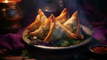 A popular vegetarian indian appetizer made with a combination of spinach, green peas, and potatoes