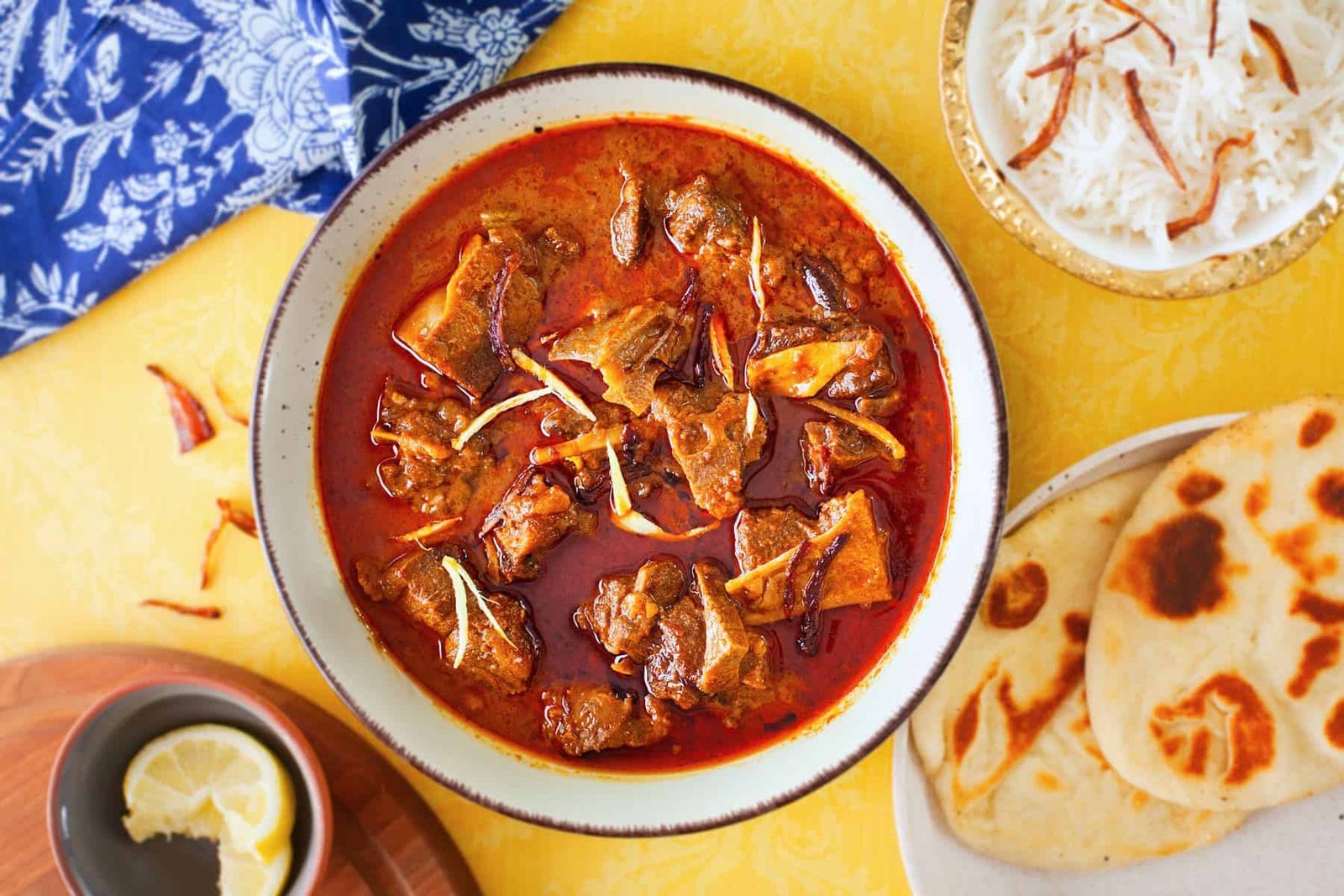 A classic and flavorful Indian curry where lamb is slow-cooked with aromatic spices, onions, and tomatoes until the meat is tender and the flavors are well-developed.